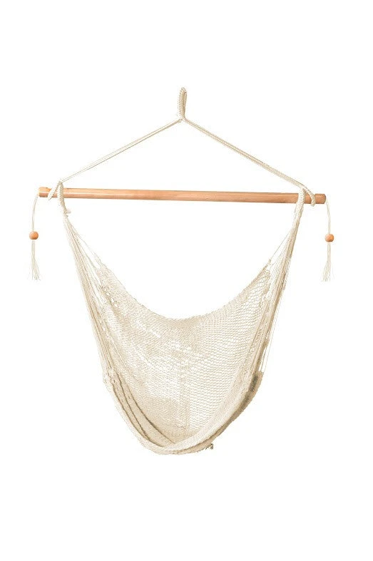 Sit back and stretch out! This rope hammock chair has it all: quick installation, the comfort of hand woven cotton rope, enough slack to stretch your legs out and durability to recline to your most comfortable lounging position. This chair installs in just minutes with only one overhead hanging point. These chairs are beautifully decorated with tassels and braided rope with a wide variety of colors to choose from. All Bliss Hammocks ropes are made from strong eco-friendly recycled cotton.