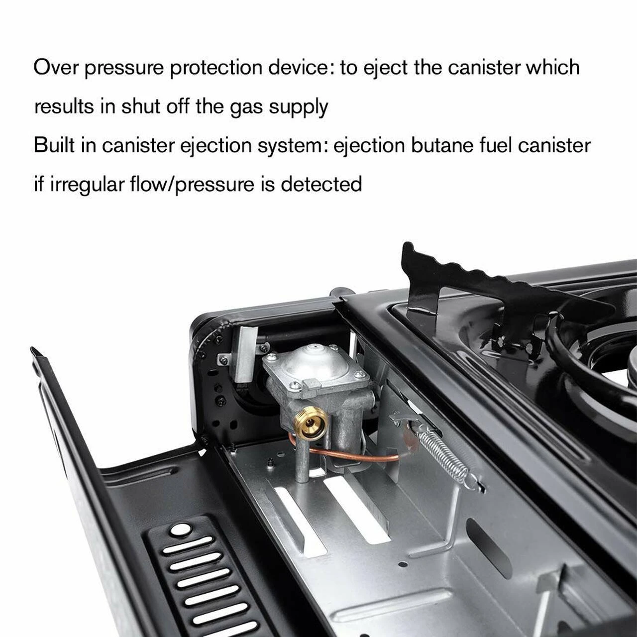 -Built in canister ejection system:ejection butane fuel canister if irregular flow/pressure is detected.