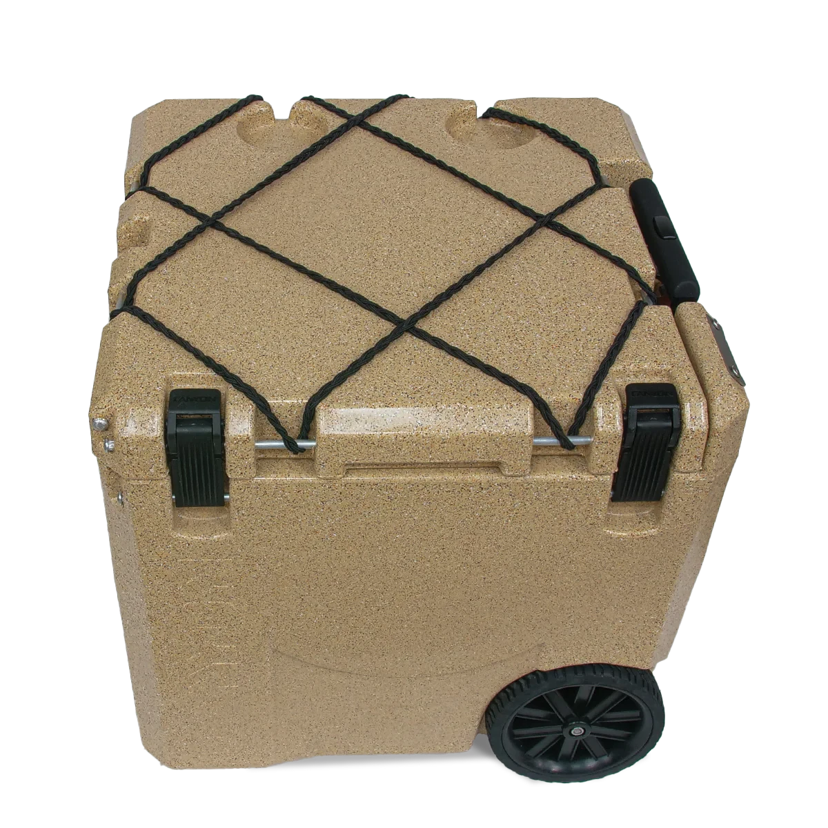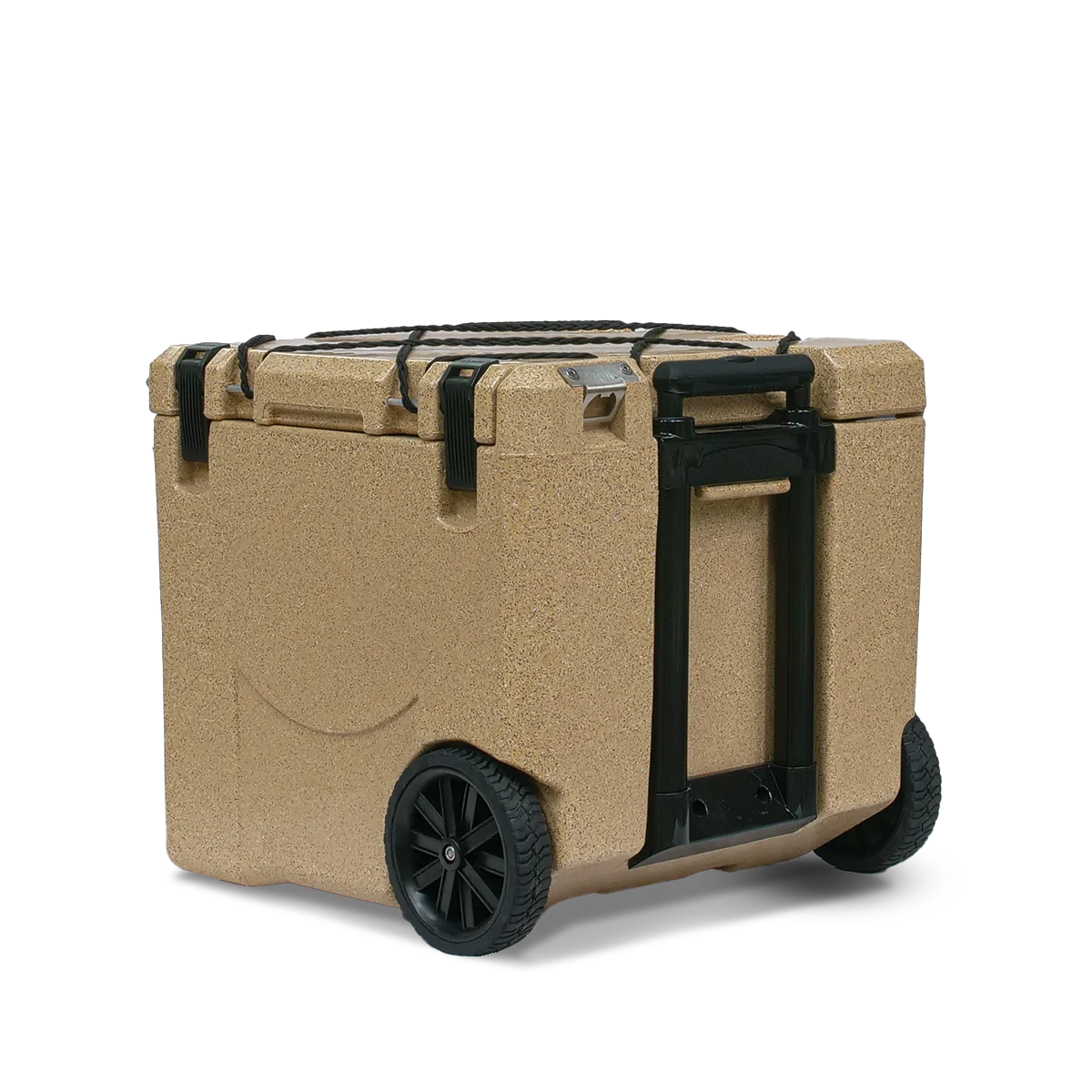 The Mule is fitted with hard-wearing wheels that make getting 32 quarts of the cold good stuff from one location to another a breeze. When your hands are full, with more to carry just throw that extra bag on the cooler or use the integrated jungle cord bungee for your coats, blankets, or the favorite lure box. Efficiently packs with our clean square design and no wasted space. It’s ideal for boat docks, Vegas resorts, athletic fields, tailgating or anywhere you want to take your provisions along on your terms. Holds 2L bottle upright and guaranteed for life.