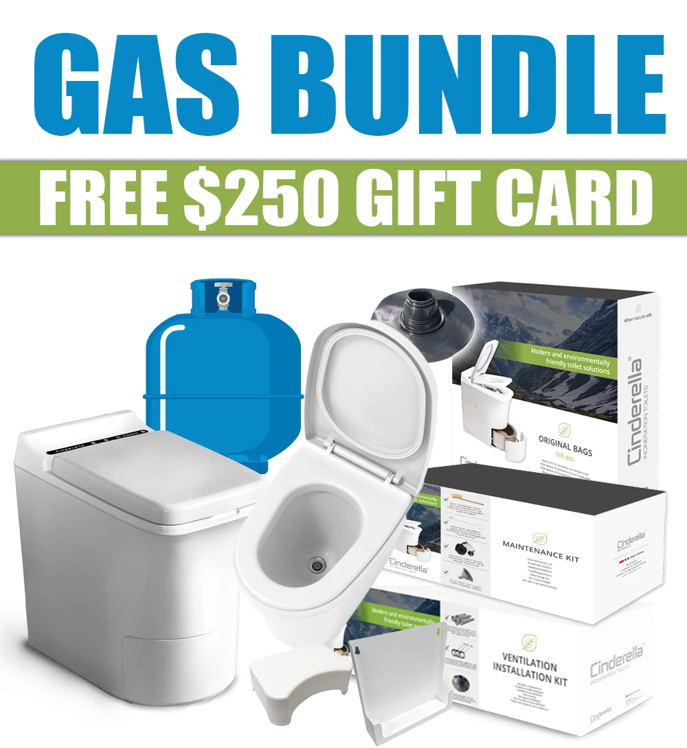 This special bundle includes the new Cinderella Urinal which will significantly reduce the amount of incineration cycles that your Cinderella Freedom would otherwise require to evaporate urine only, saving you propane and wear & tear on your Cinderella Freedom toilet.