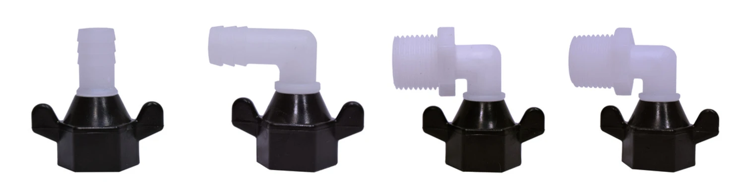 - 1 – ½” 90º Barbed Adapter
