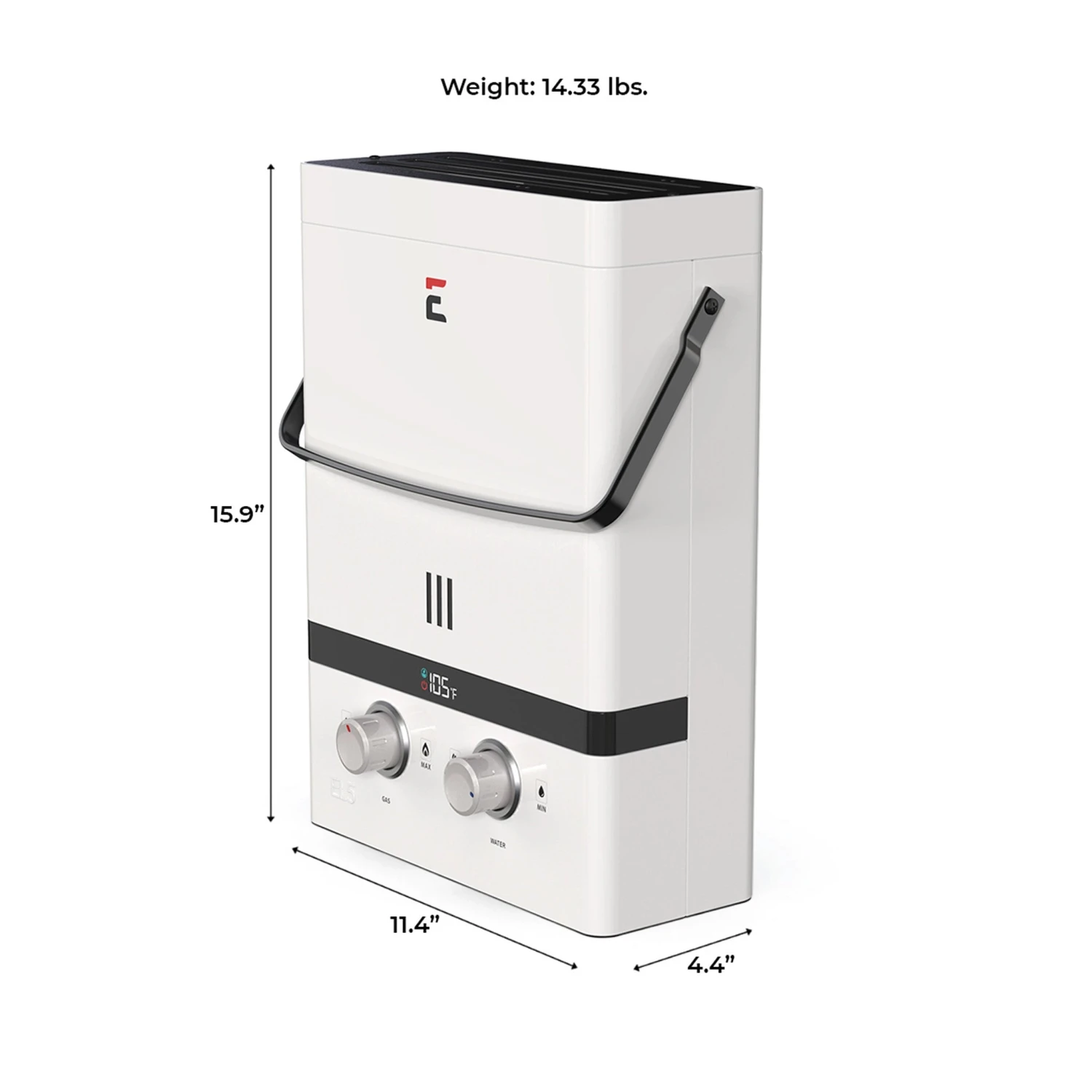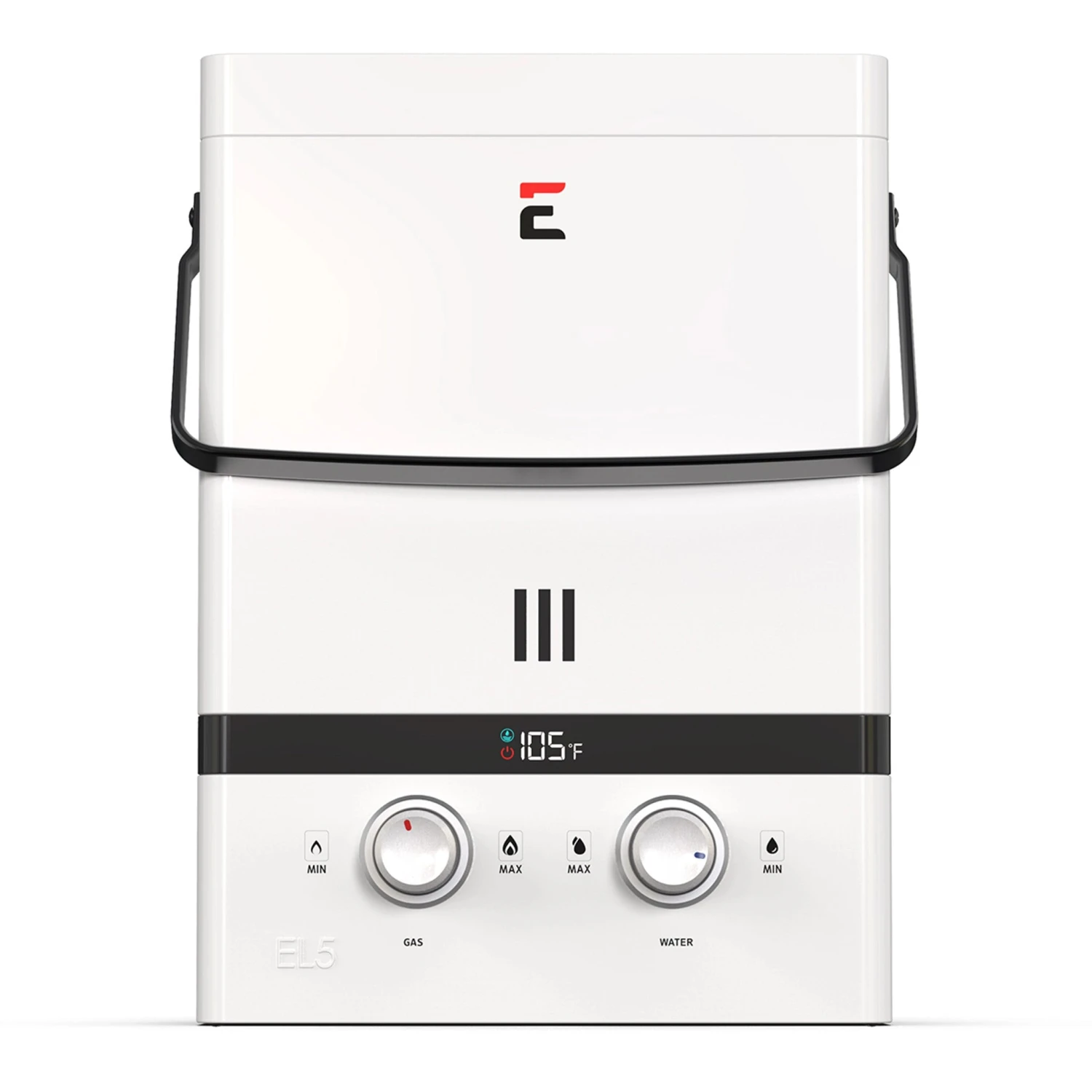 Eccotemp’s Portable Tankless Water Heaters are the number “1” sold and trusted CSA approved portable outdoor tankless water heaters in the world. The Eccotemp Luxe EL5 Portable Tankless Water Heater was meticulously designed with quality, features and price in mind. The Luxe EL5 Portable Tankless Water Heater features an All-Weather Rain Cap and Tri-Coat Pearl White Powder Coat Paint. This gives the Luxe EL5 a beautiful look and feel unlike anything on the market. Our unique steel designed carrying handle adds an element of durability and quality which no other competitor has.