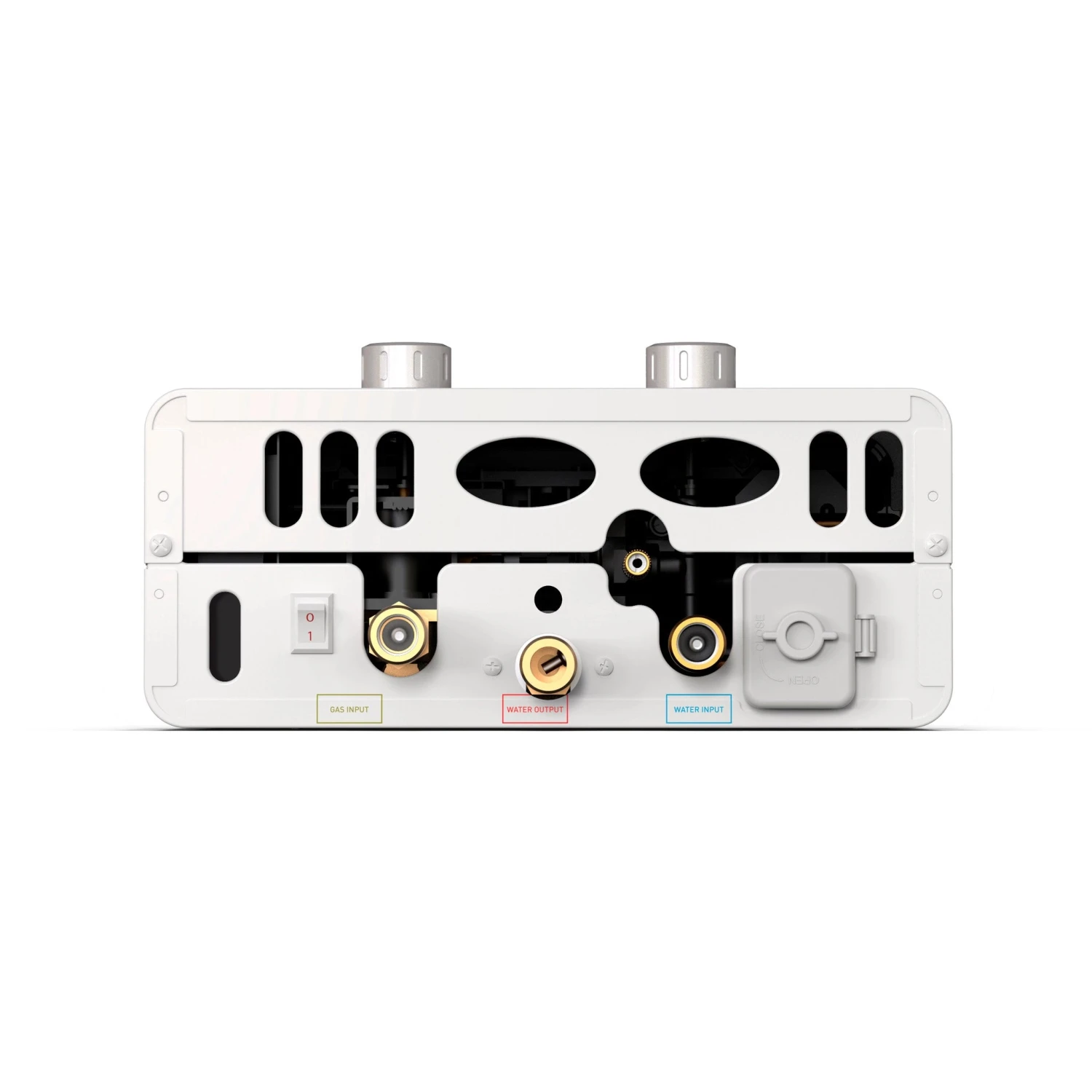 Features a Safety Shut Off Switch that automatically shuts down the water heater when tilted more than 45 degrees.