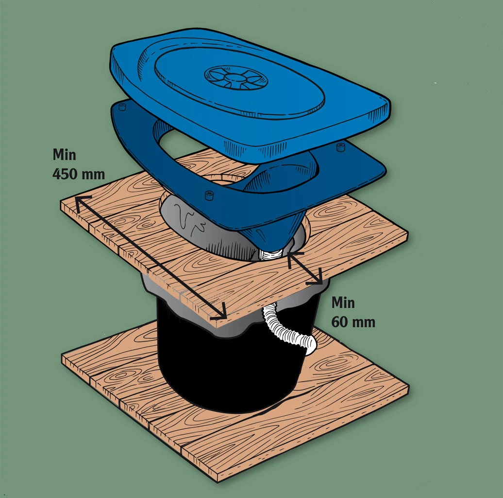 The packaging for Privy 500 has a template that can be used to easily fit the Privy into your outhouse.