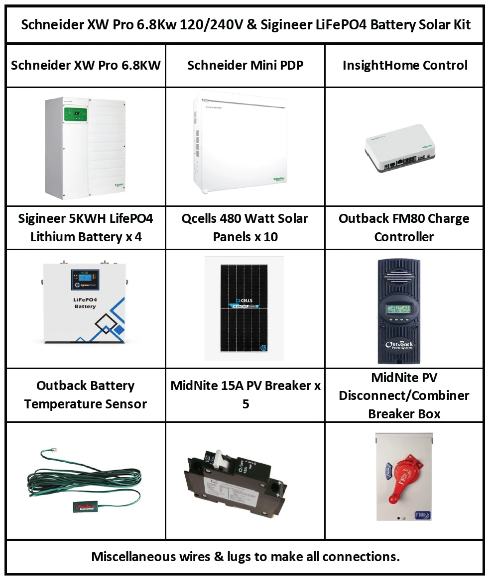 Schneider® Schneider XW Pro 6.8Kw 120/240V & Sigineer LiFePO4 Battery Solar Kit