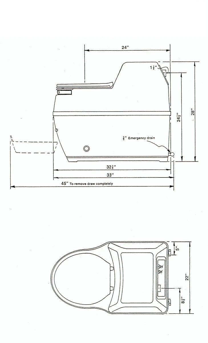 As with the Excel, a 2″ vent stack attaches to the rear of the Compact. A 1/2″ emergency drain at the rear offers protection against heavy or residential use, or prolonged power outage.