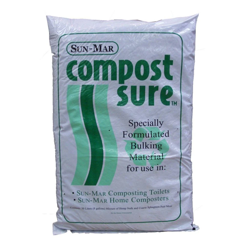 Compost Sure comes in an 8 gallon (30L) bag and is available in two varieties. Compost Sure has been designed specifically for Sun-Mar’s composting toilet systems. Our Compost Sure is composed of hemp and peat moss which will decompose quickly.
