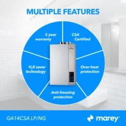Marey 14L Direct Vent Indoor Tankless Water Heater + Vent Bundle